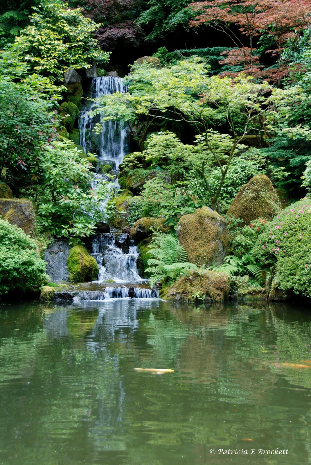 The waterfall predominately is using the upper two thirds in the left column, or the entire column if one counts the slight reflection. The foliage and the rest of the water can be seen as the other two thirds of the photo. Another way to see this, would be to view the water horizontally taking up a a little more than a third of the photo and the waterfall and landscape taking up almost two thirds of the photo.